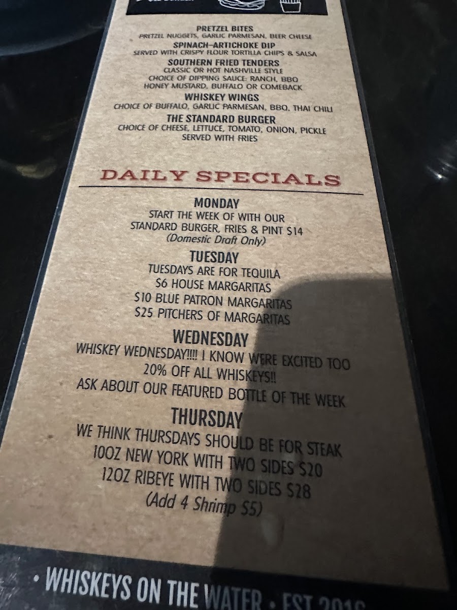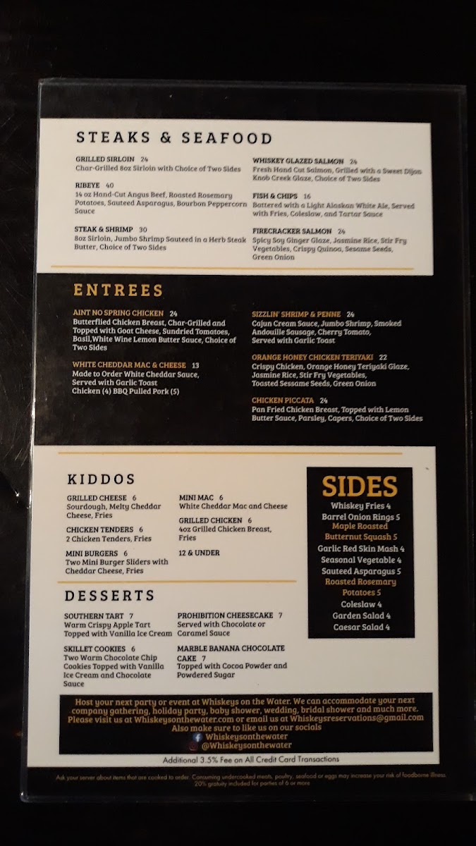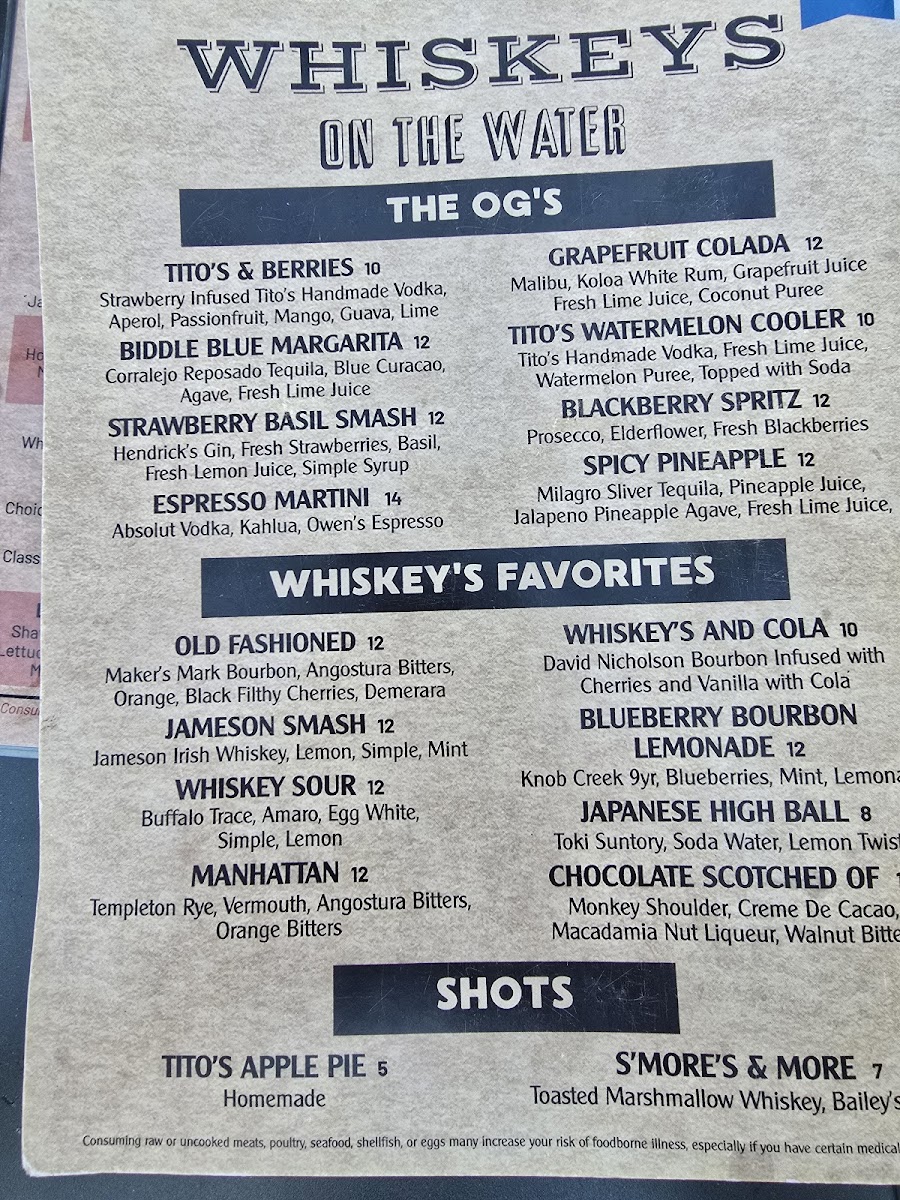The dining atmosphere at Whiskeys on the Water is both lively and relaxing. Customers rave about the picturesque outdoor seating, which offers glimpses of the water. You can't help but feel at home as you sip on expertly crafted cocktails like the Lemon Drop Martini, a favorite among patrons for its perfect balance of tart and sweet.